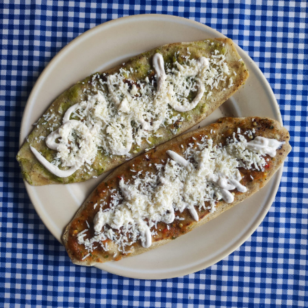 Son un antojito mexicano que consiste en una tortilla gruesa de masa de maíz frita en manteca y rellena, se abren para rellenarlas de con toppings como cebolla, cilantro y queso, además de salsas al gusto.