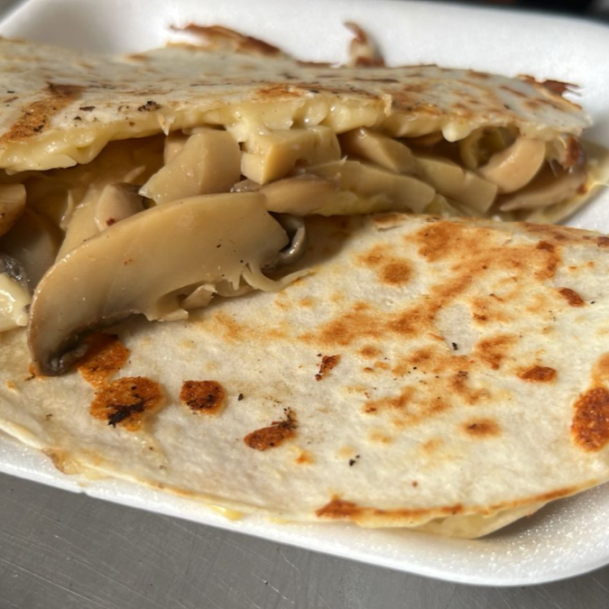 Chuleta, chorizo, champiñon, cebolla, poblano, y queso