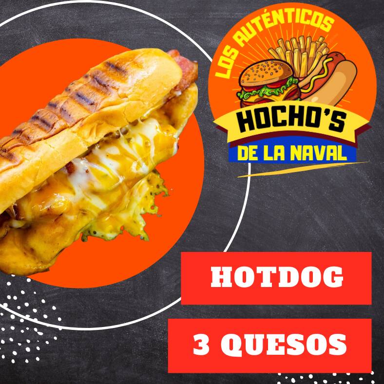 Hotdog con Salchicha Jumbo acompañado de chorizo,cebolla caramelizada, aguacate,aderezos,mayonesa,queso amarillo liquido,catsup, Queso Gouda,Queso de Hebra Gratinado ó Deshebrado, Queso Americano
