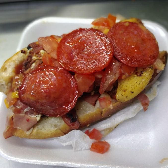 Incluye salchicha para hot dog catsup queso amarilla queso de hebra y tomate una porción de chistorra y un ingrediente a elegir