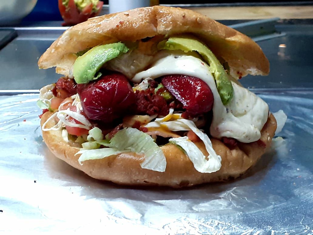 incluye una salchicha para hot dog,jitomate,capsut,jamon,lechuga,aguacate,queso ala plancha y porcion de pastor