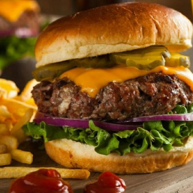 Dos personas ,Incluye dos hamburguesas clásicas, Carne de 90 gr jamón, tocino, jitomate, aguacate, lechuga, queso amarillo, cátsup, queso de hebra.