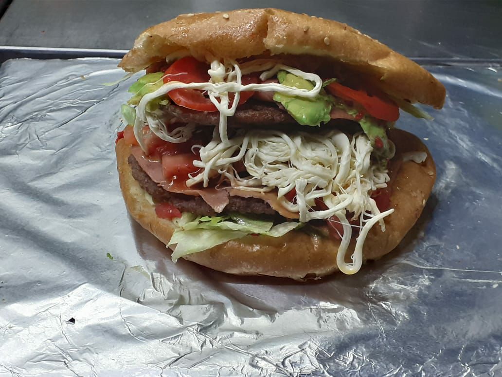 Incluye 2 Ruedas de carne de res, mayonesa , lechuga, jitomate, catsup, queso amarillo, aguacate, queso de hebra,jamón, tocino y 2 ingredientes
