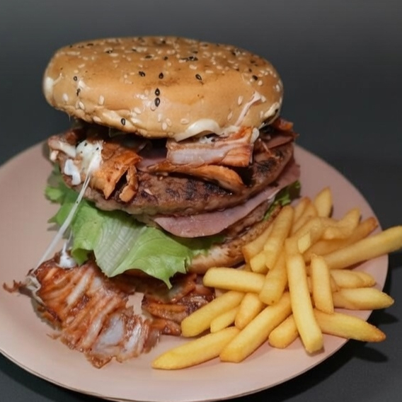 Hamburguesa Doble + 1/2 porción de papas