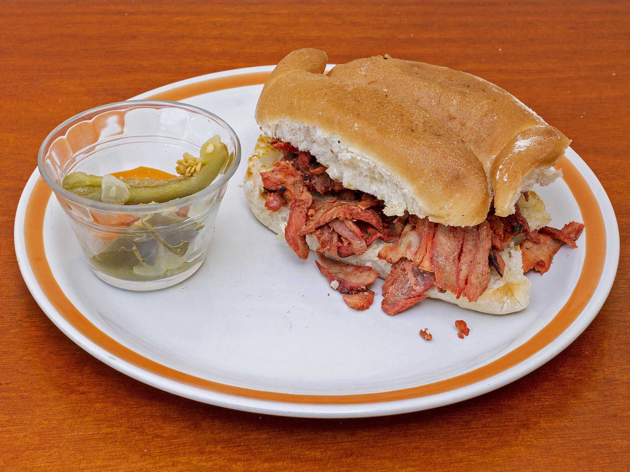 Con mayonesa, acompañada de cebolla morada y habanero.