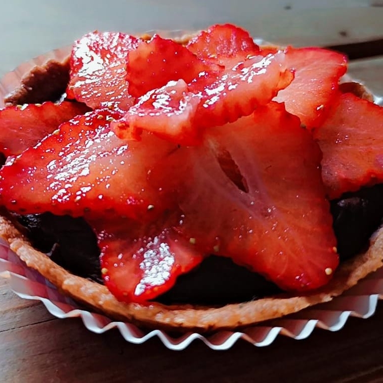 BASE DE MASA QUEBRADA, RELLENA CON GANACHE DE CHOCOLATE, DECORADA CON FRUTA DE TEMPORADA