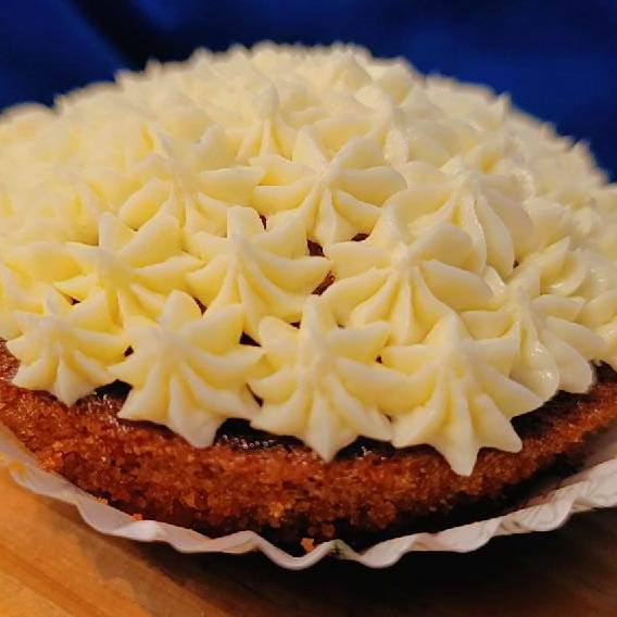 PAN DE ZANAHORIA ARTESANAL CON TROCITOS DE NUEZ, CUBIERTO CON UN DELICIOSO BETÚN DE QUESO CREMA
