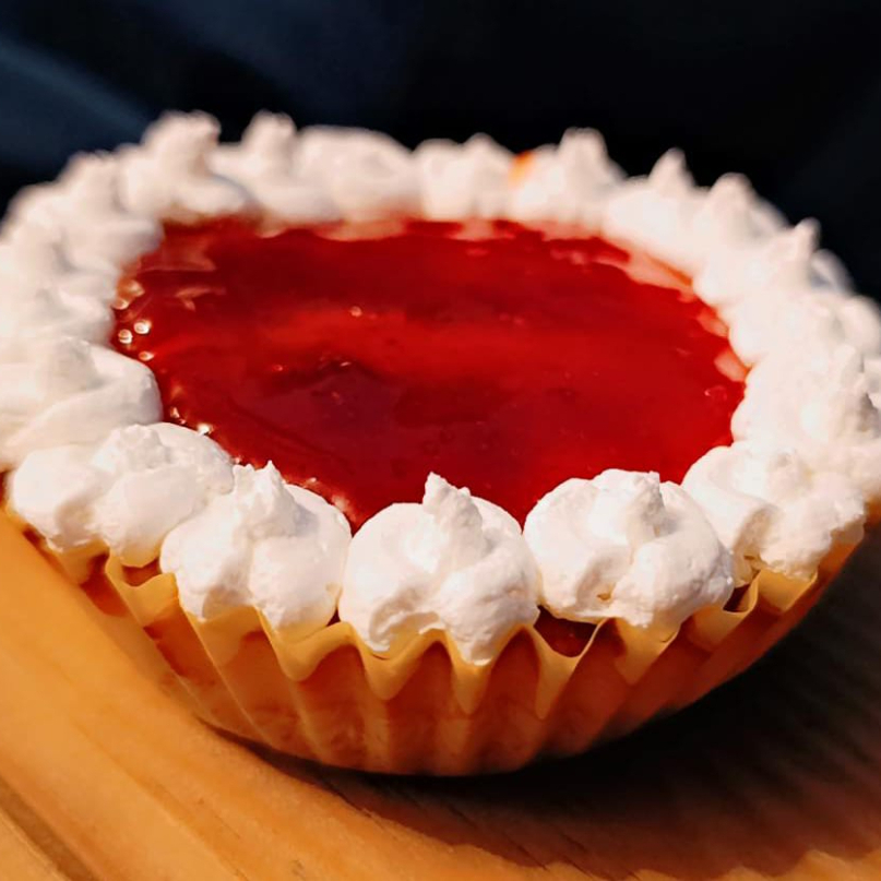 PAY DE QUESO CON MERMELADA DE FRESA DECORADO CON CREMA BATIDA