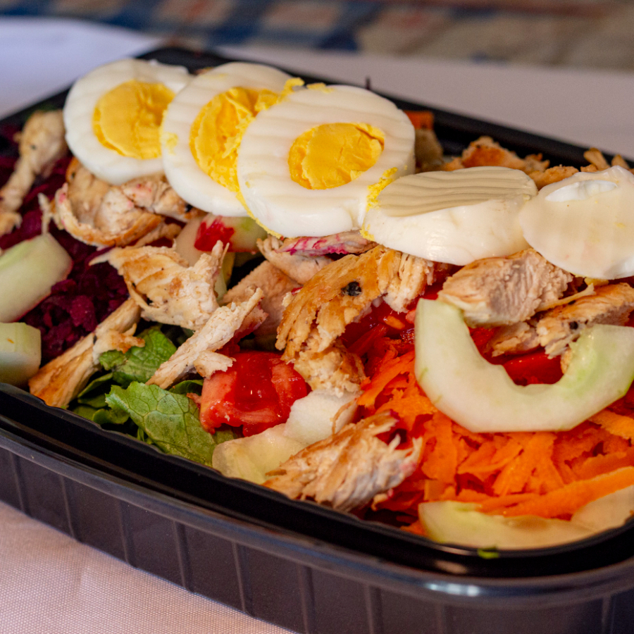 Lechuga, jitomate, pepino, espinaca, zanahoria, betabel, huevo cocido, queso fresco.