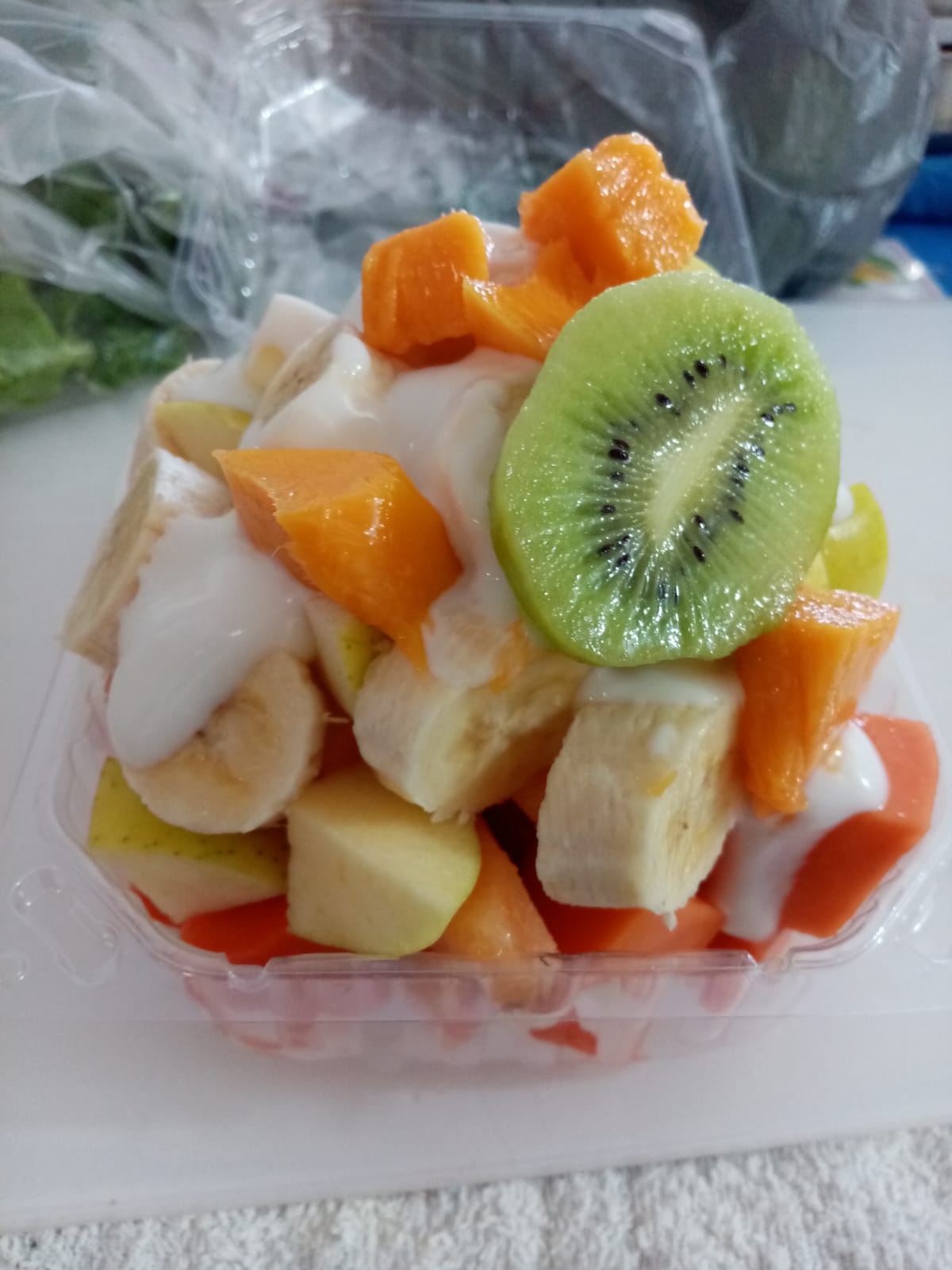 Melón, papaya, plátano, manzana , yogurt, granola y miel.