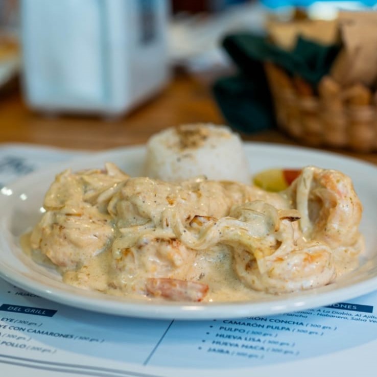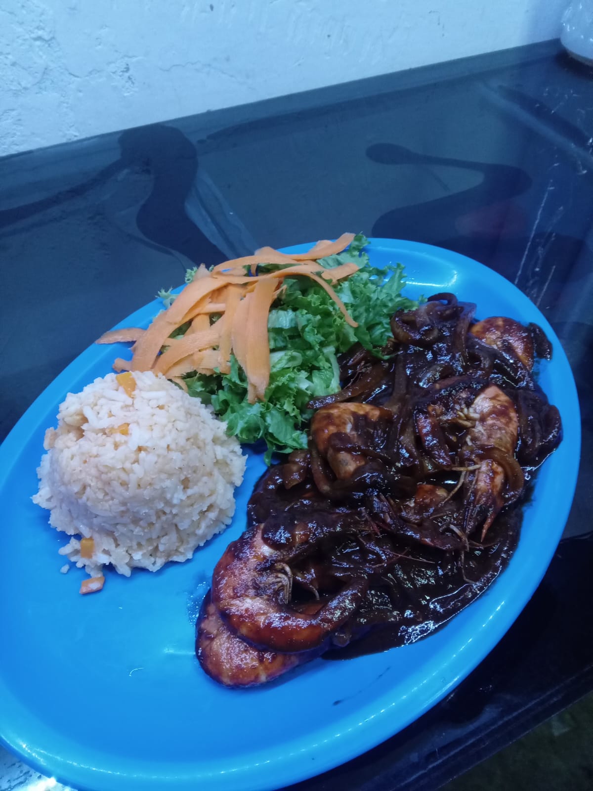 Con camarón, pulpo, caracol, jaiba y ostión.