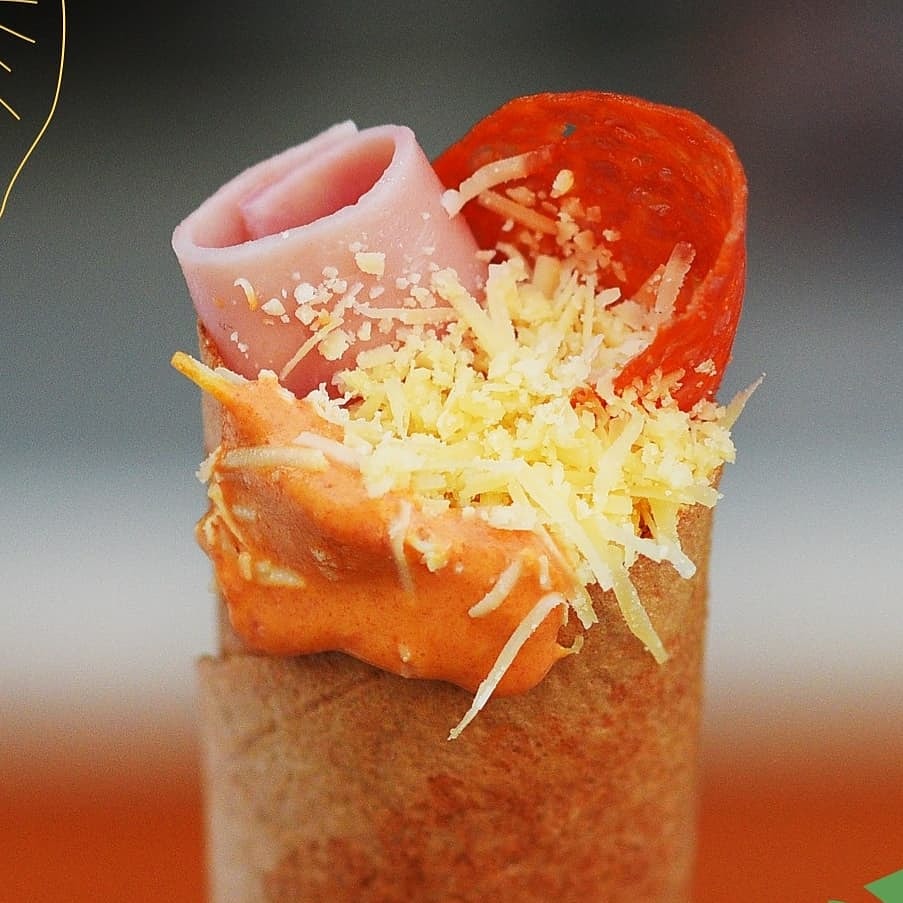 Queso de bola, pepperoni, jamón de pavo y aderezo de chipotle.