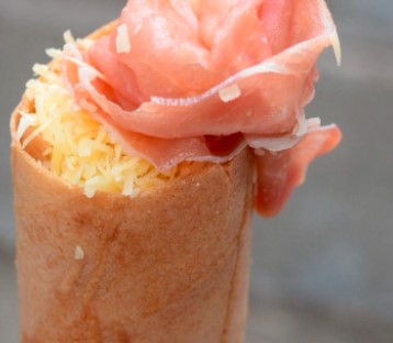 Queso de bola, jamón de pavo y jalapeño.