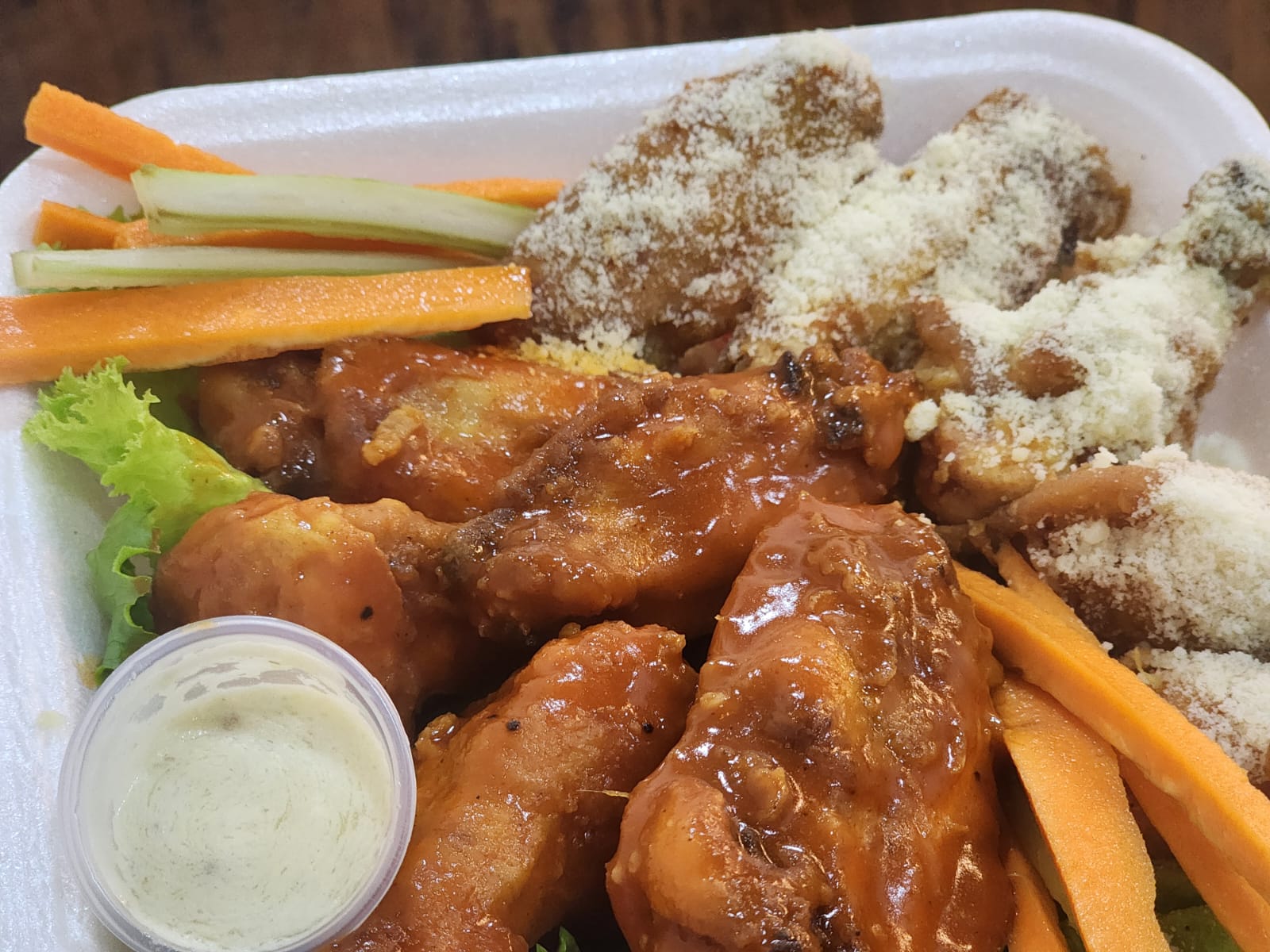 Orden de 20 alitas bañadas en salsa a elección.