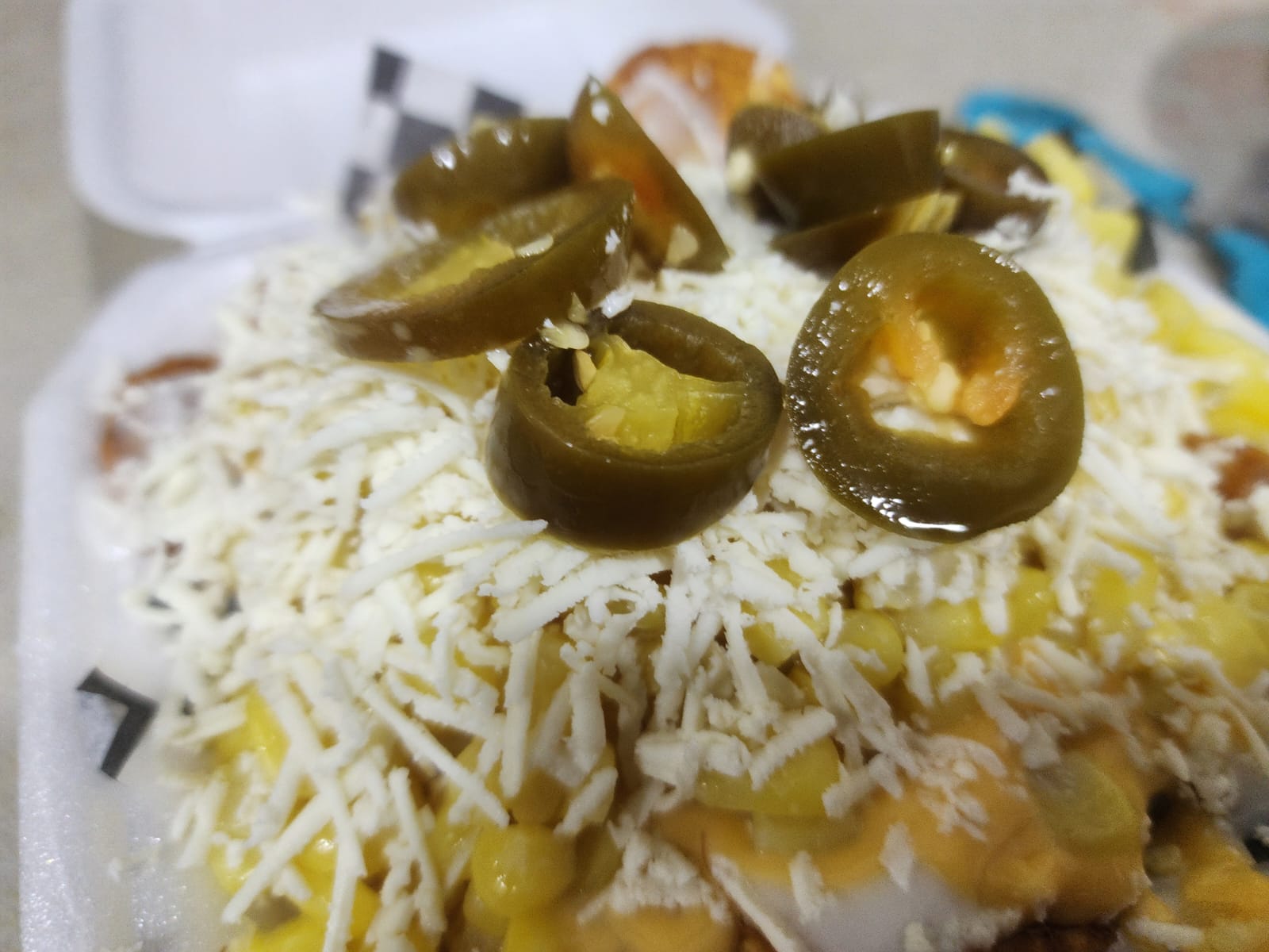 Tostitos con esquites y toppings.