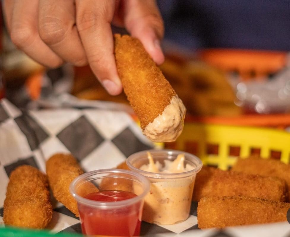 Dedos de queso empanizados y dorados.