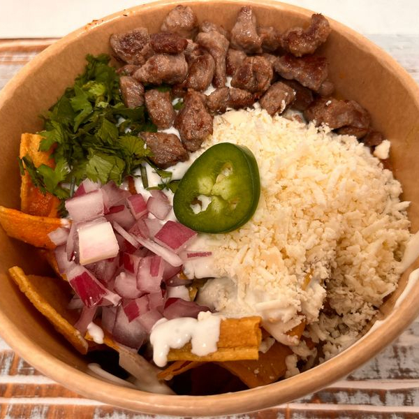 CHILAQUILES/SIRLOIN/SALSA/CREMA/QUESO/CEBOLLA/CILANTRO