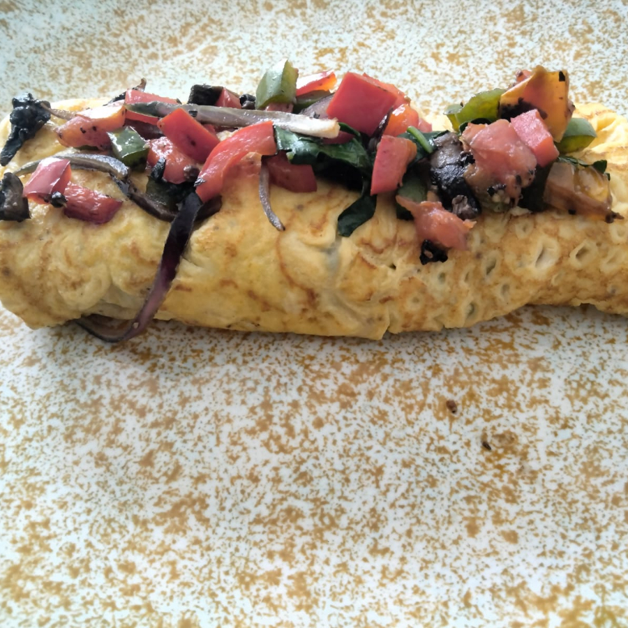 Huevo 2/Pan Tostado/Queso Gouda/Champinon/Pimiento/Espinaca