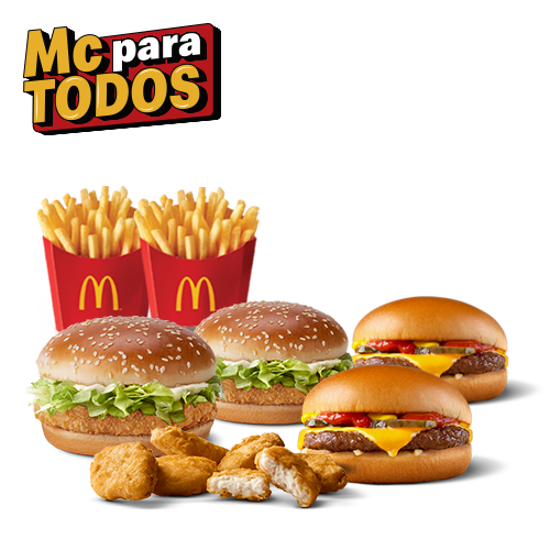 2 Hamburguesas con Queso + 2 McPollo + 2 Papas Medianas + 6 McNuggets