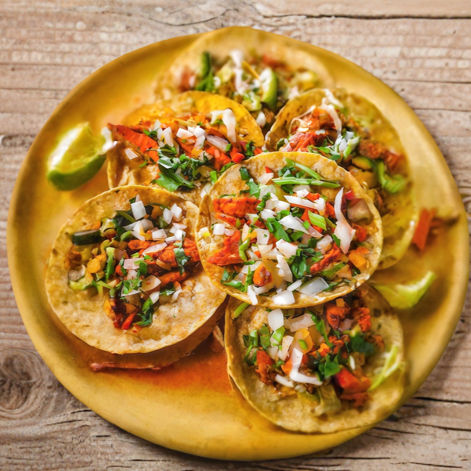 Incluye 18 tortillas, cebolla y cilantro, limones y salsa