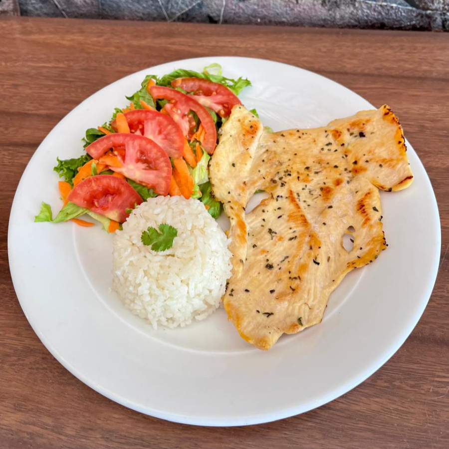 Pechuga Asada a la Plancha a las Finas hierbas con Guarnición de Arroz Blanco y Ensalada de la casa