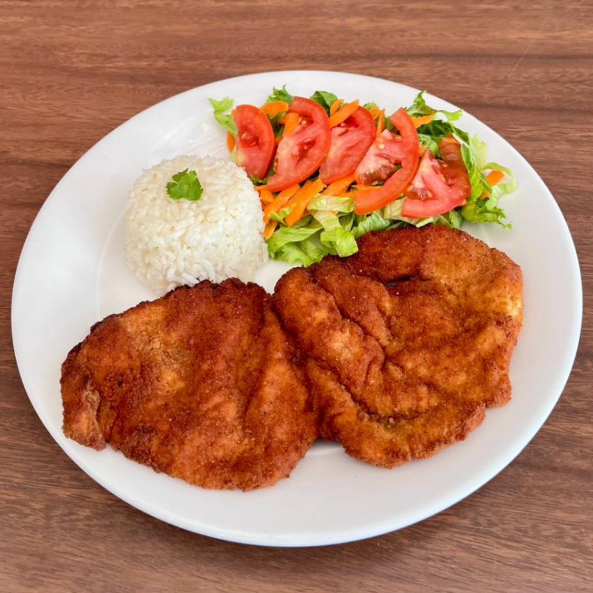 Milanesa de Pollo con Garnición de Arroz blanco y Ensalada de la Casa
