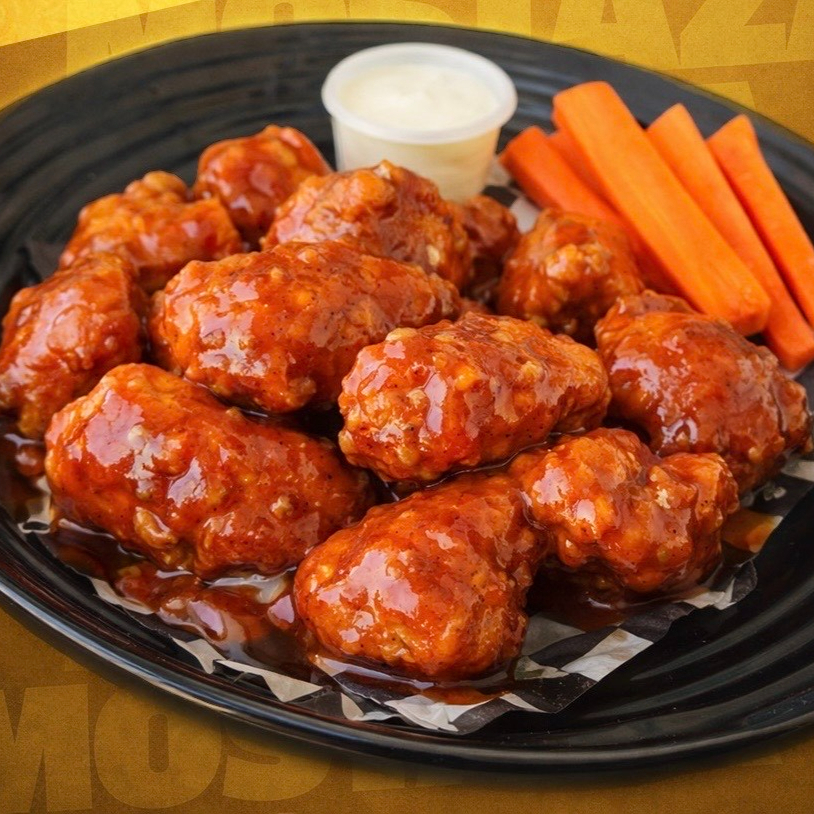 Trocitos de pechuga de pollo crujientes por fuera y jugosos por dentro, bañados con la salsa de tu elección. Incluyen 1 oz de salsa ranch.