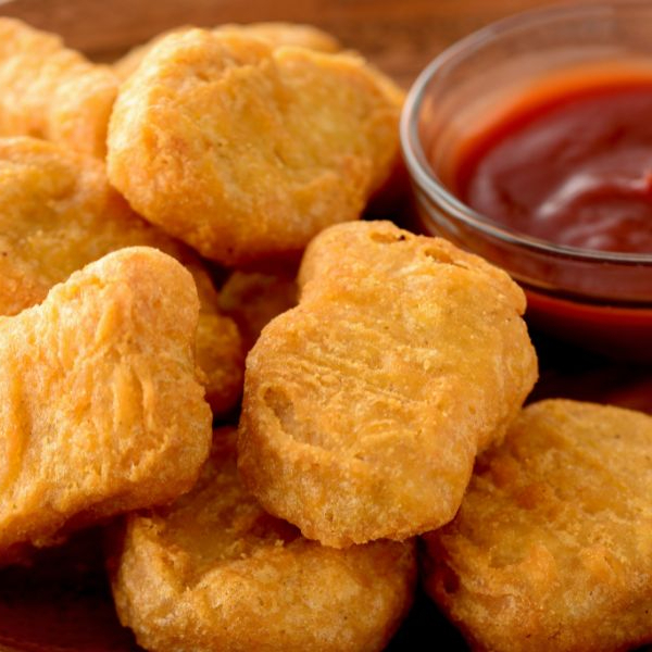 10 piezas crujientes de nuggets de pollo. Incluyen DIP de salsa cátsup.