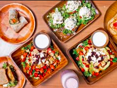 Mezcla de lechugas, espinaca, zanahoria rayada, tomate, pepino, cebolla, pimiento verde y rojo, aguacate, fresa, arándanos, nuez, queso fresco,pasta fusilli.