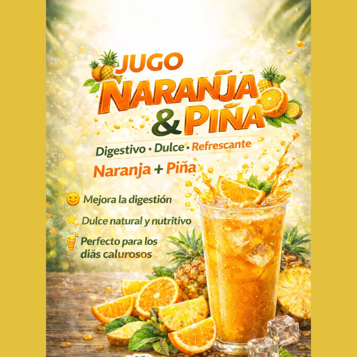 Una combinación de jugo de naranja como base combinación de pepino y piña 1 litro