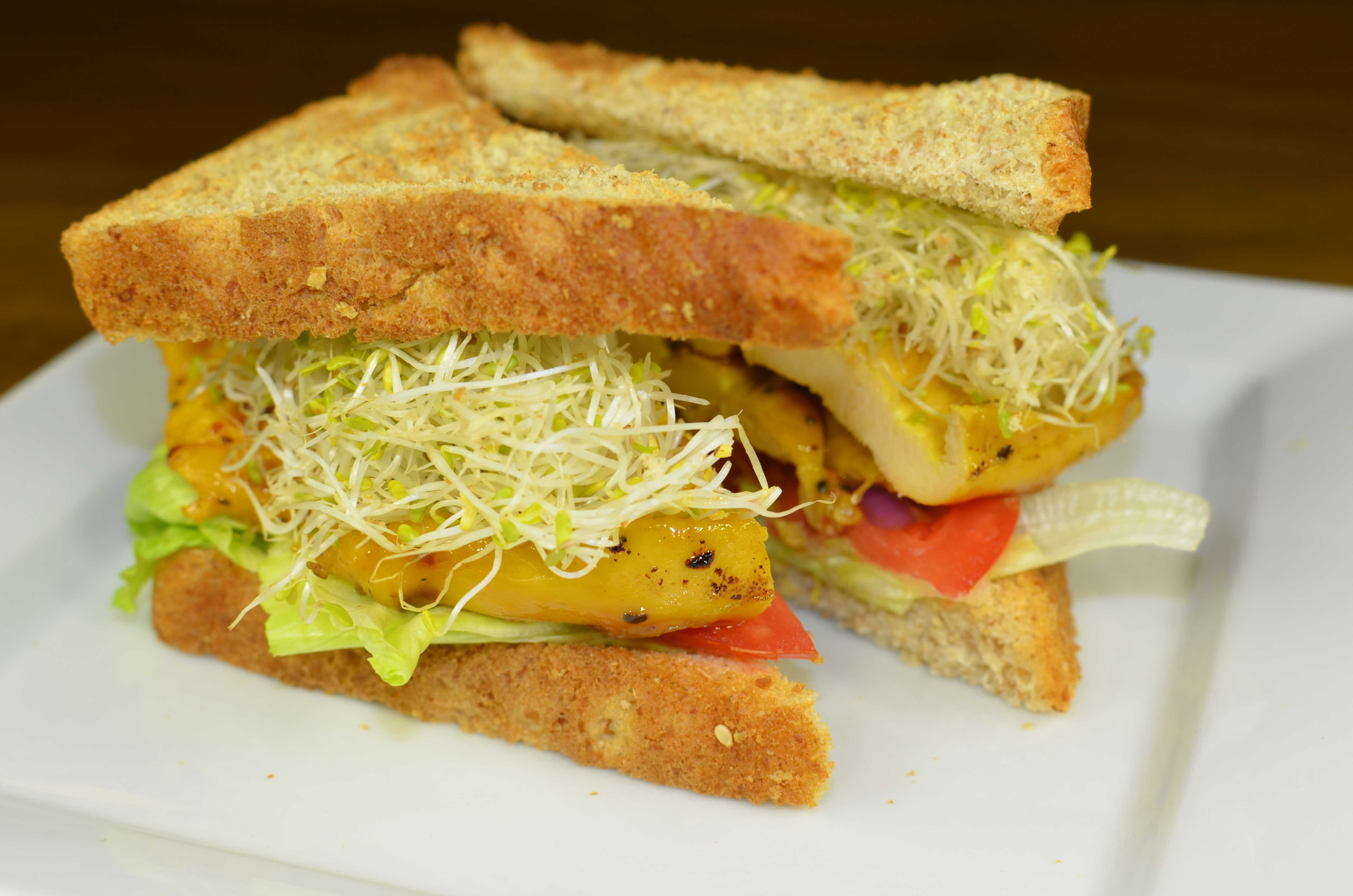 Pan integral, lechuga, jitomate, queso amarillo o panela, mayonesa y salsa de chipotle.