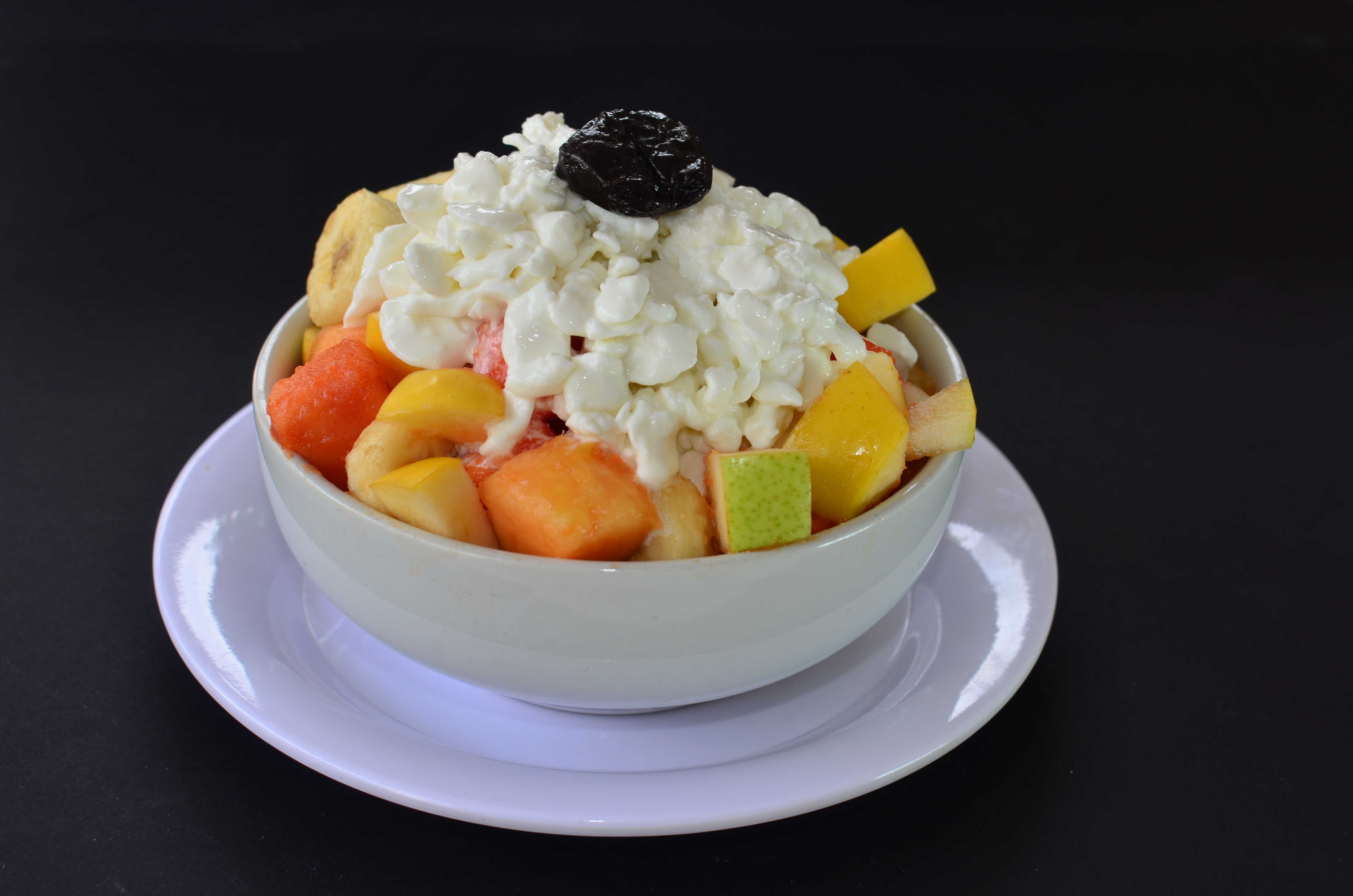 Ensalada de 4 frutas con queso cottage + 3 cereales a elegir.