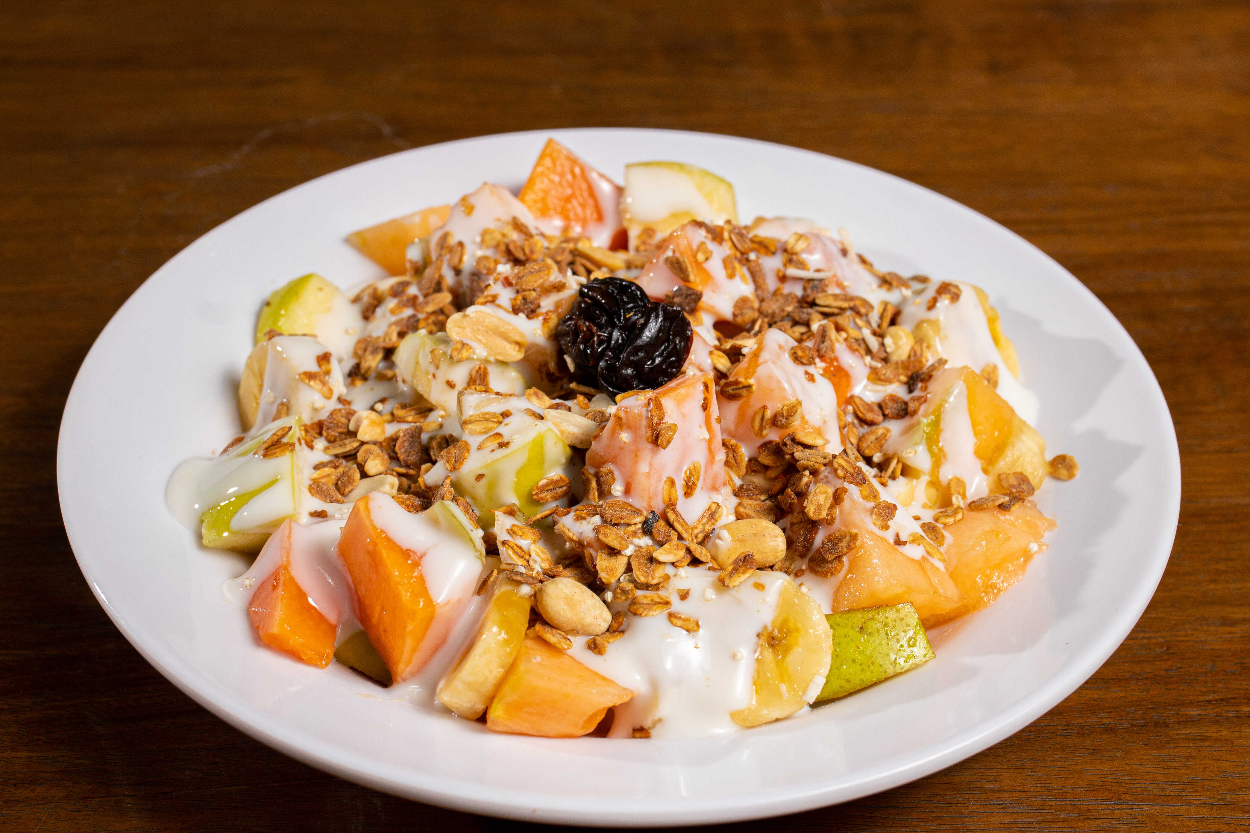 Ensalada de fruta con el aderezo dulce de la casa 500 g y 3 cereales.