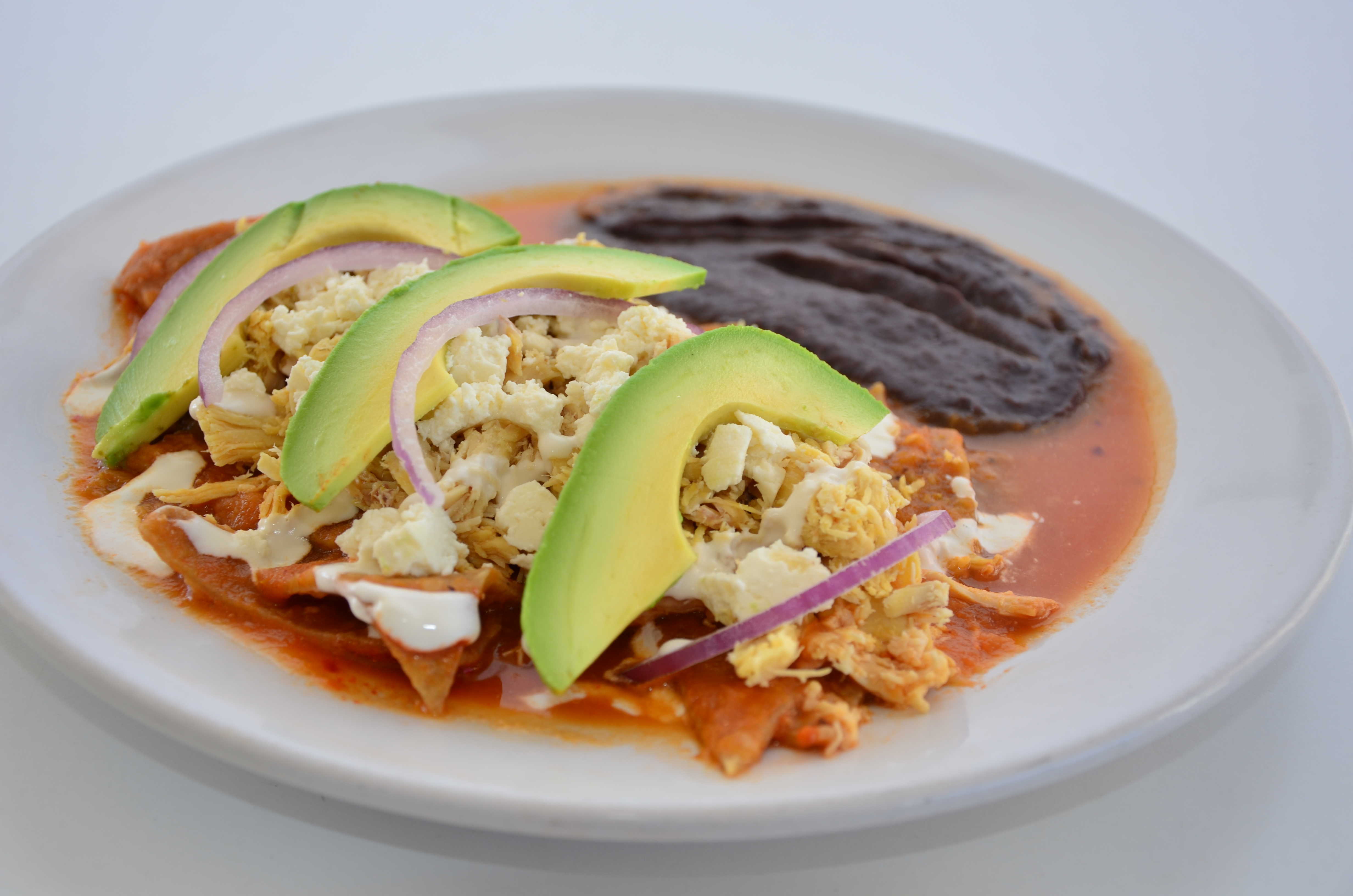 Enfrijoladas acompañadas con pollo ó requesón, cebolla, queso panela y crema.