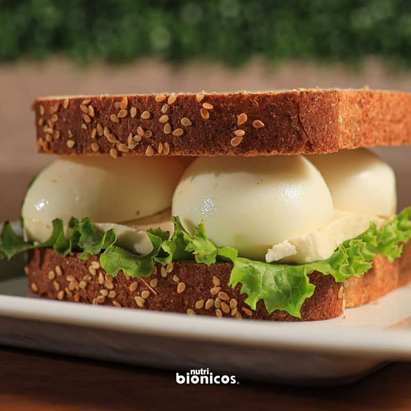 Pan integral, huevo hervido, queso panela, lechuga, jitomate, mayonesa y salsa de chipotle.