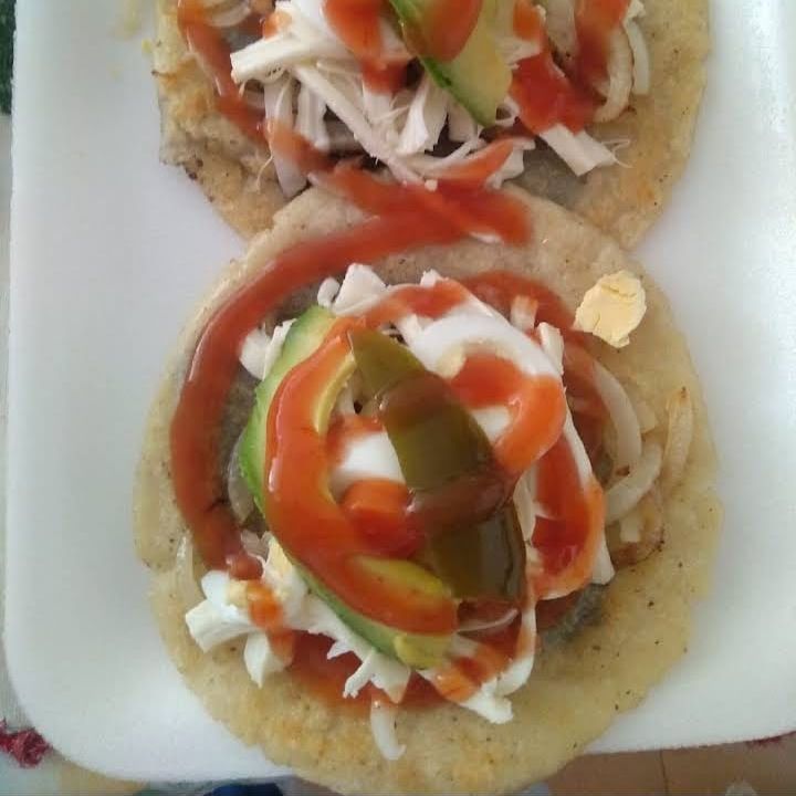 Tortilla de maíz dulce, frita e inflada, preparada con queso, crema y salsa de tu elección.