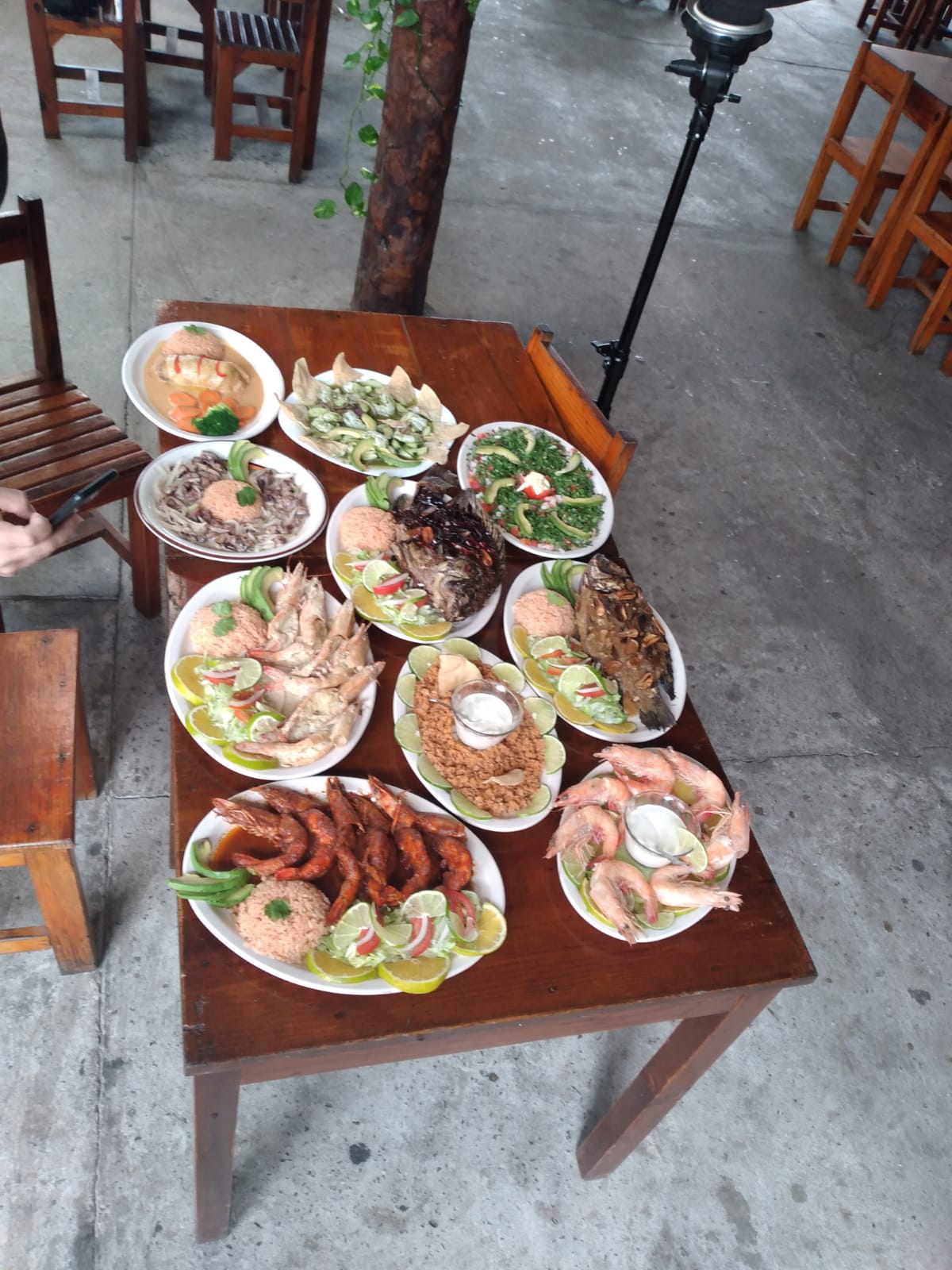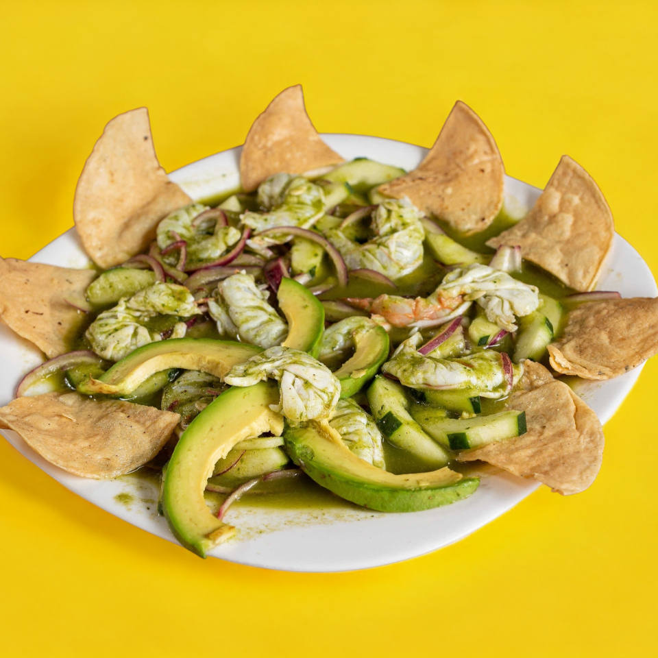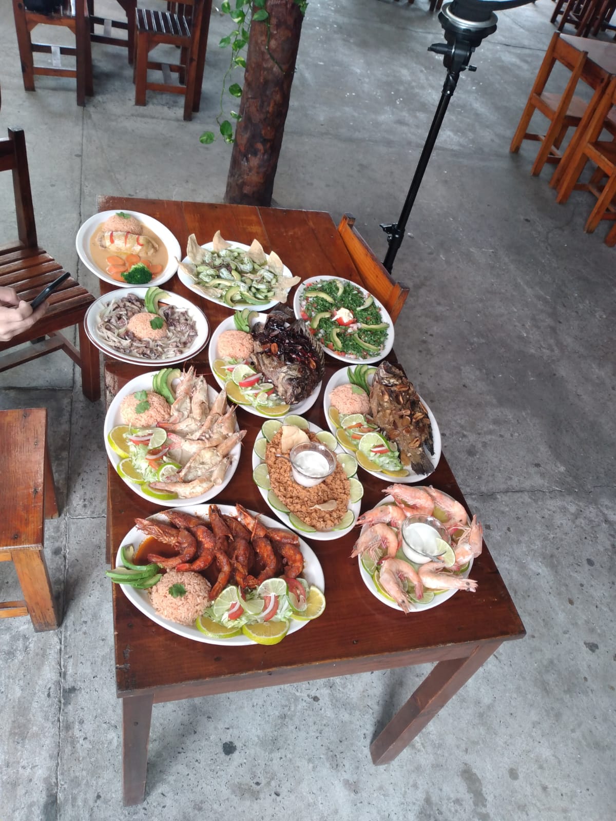 Todos los mariscos: camarón, caracol, pulpo, jaiba y ostión.