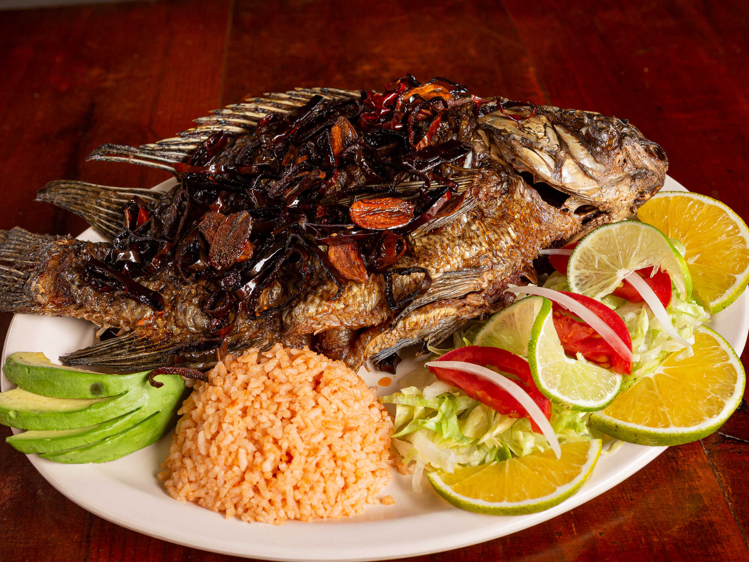 Mojarra mediana, elegir 1 estilo: Frita, enchipotlada, al mojo de ajo, chiltepin, ajillo, enchipayada, al chile limón.