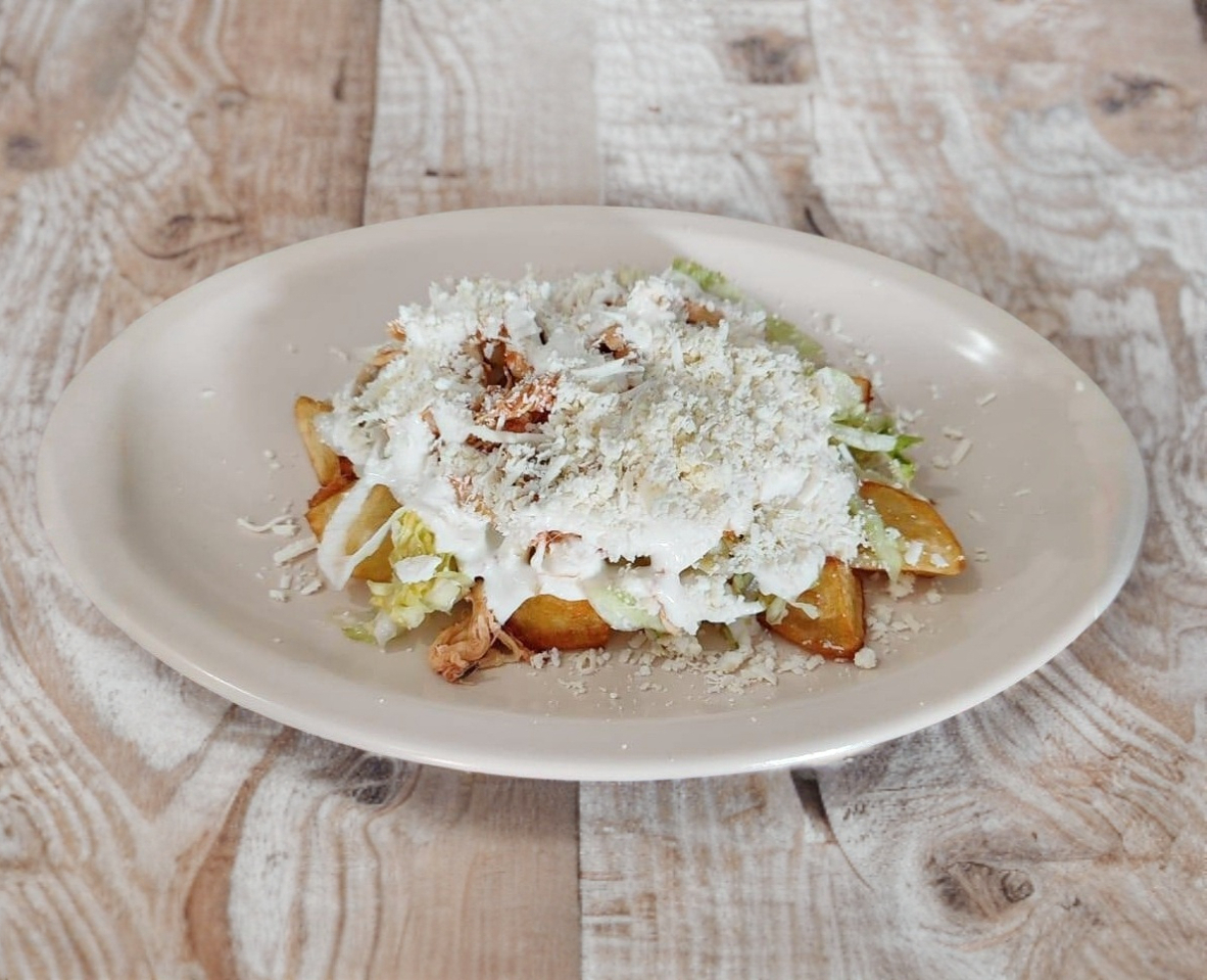 Deliciosos papa preparada para disfrutar. Puedes elegir con pollo o picadillo.