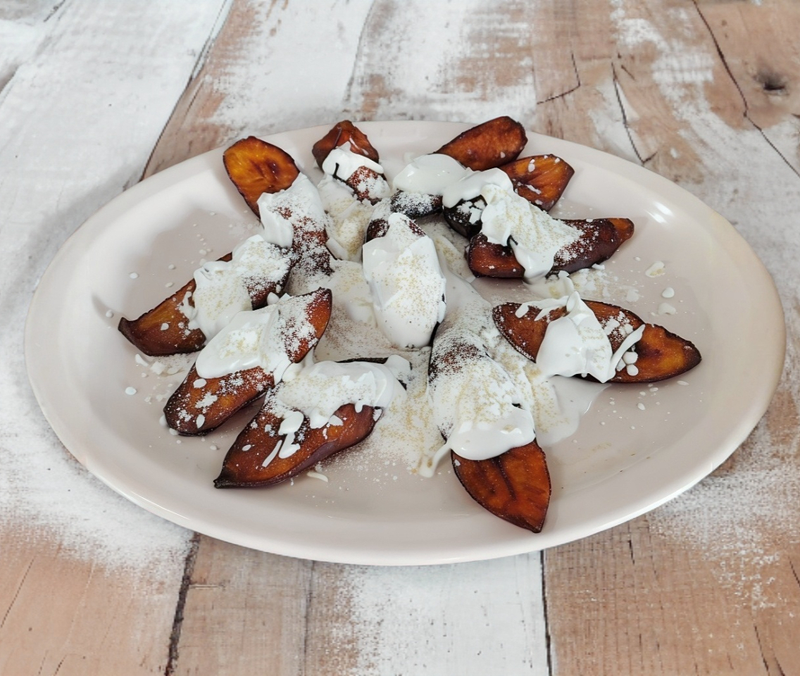 Deliciosos plátanos fritos para disfrutar, con crema y queso.