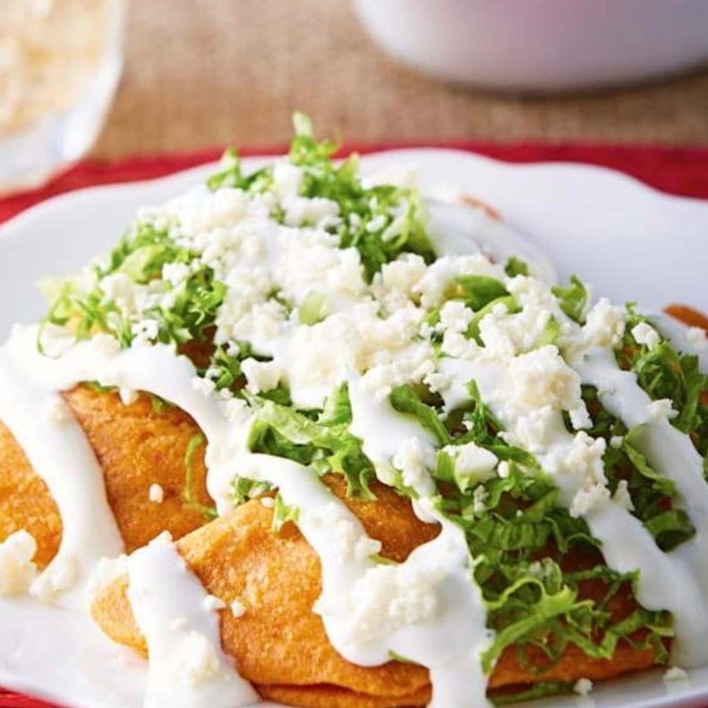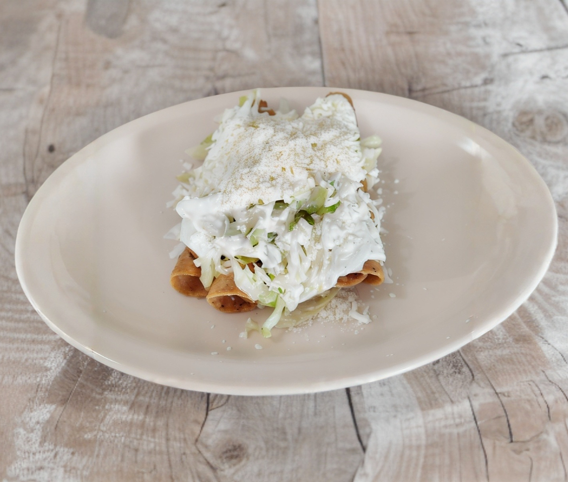 Deliciosos tacos dorados para disfrutar. 3 Piezas de tacos dorados rellenos de queso, pollo o picadillo. Preparados con lechuga, crema y queso.