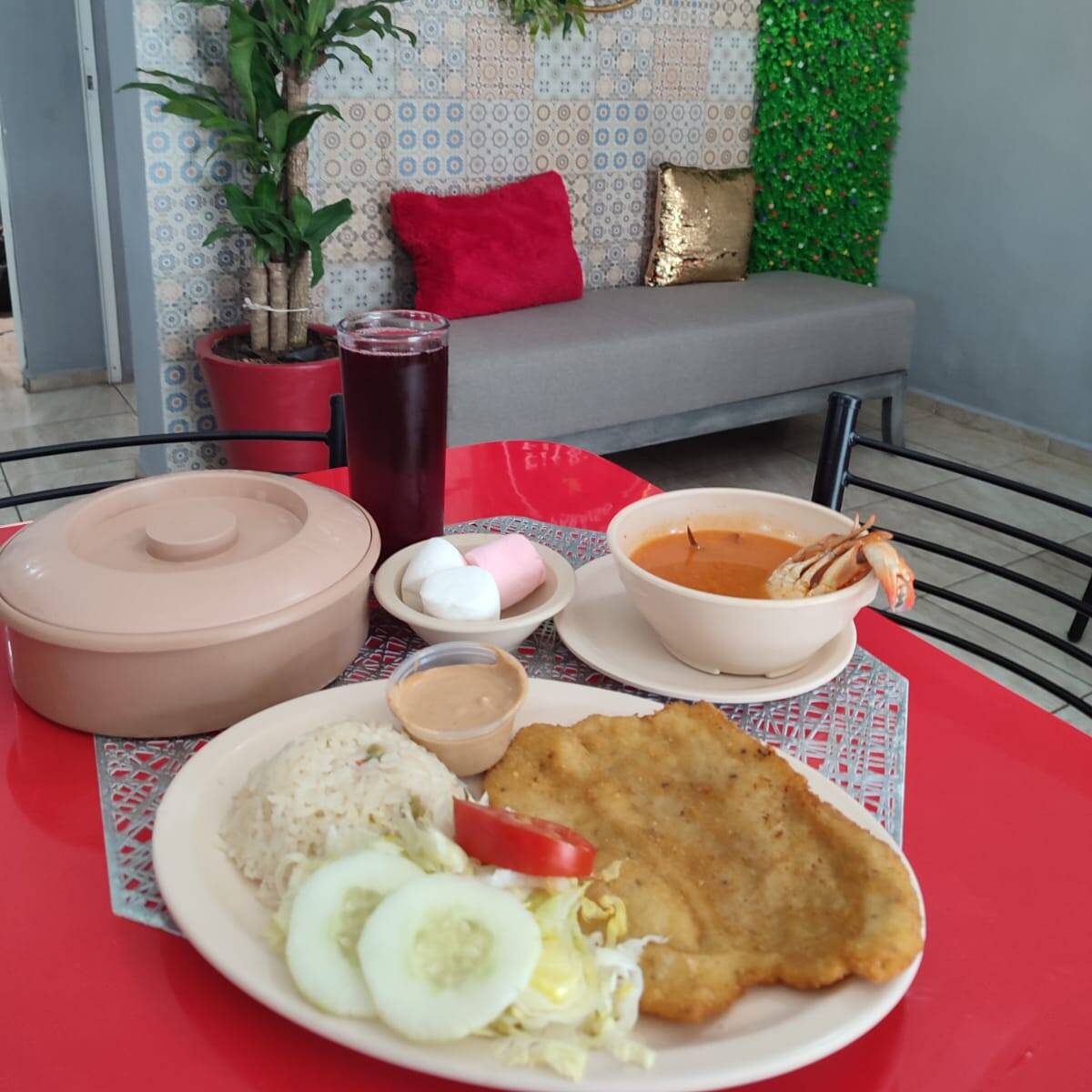 Incluye Entrada, plato fuerte(albóndigas enchipotladas), guarnicion, tortillas, salsa y agua