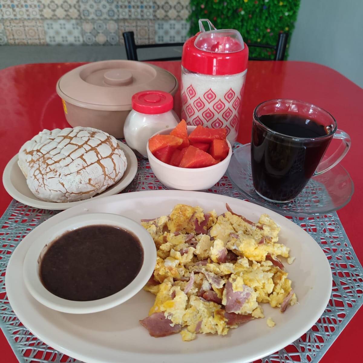 Desayunos en paquete incluye cafe, pan, fruta y un platillo