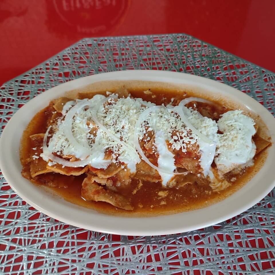 Deliciosos chilaquiles para disfrutar en tu desayuno. Rojos o verdes, con queso, crema, cebolla, acompañados con frijoles.