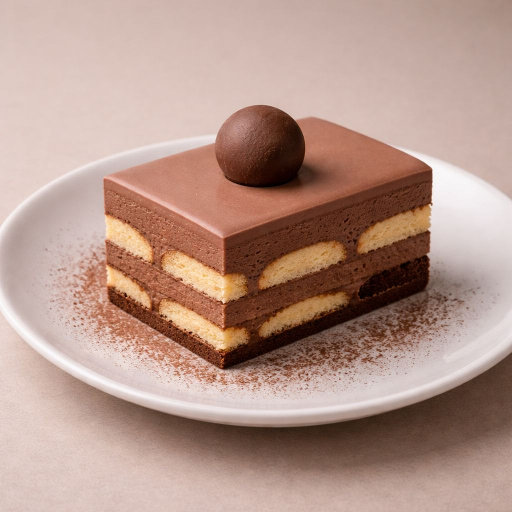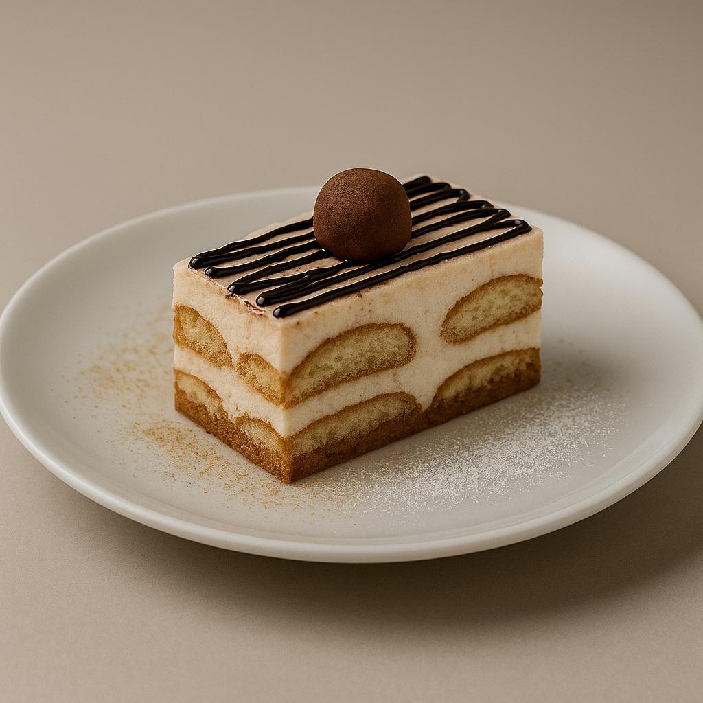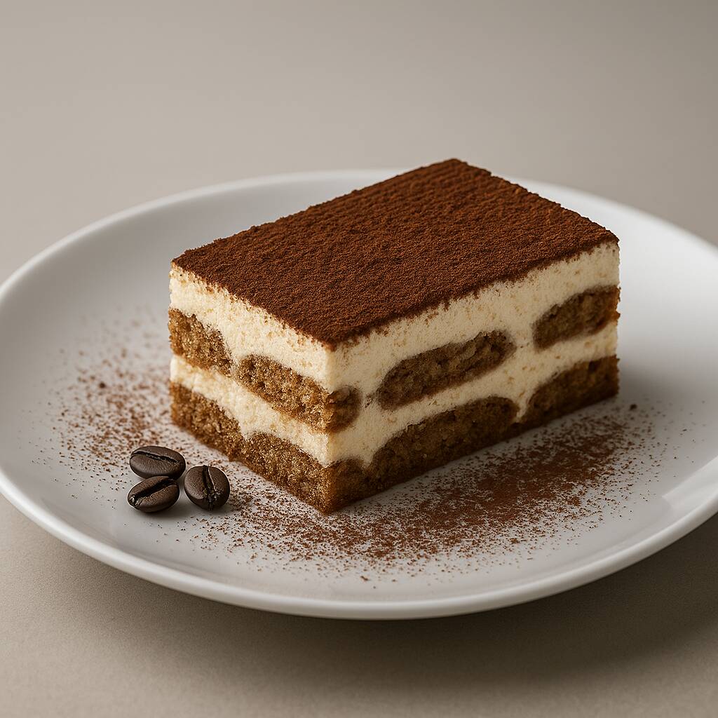 Porción de 170g de capas de soletas suaves bañadas en café espresso, crema de mascarpone y un delicado toque de cacao. Su textura ligera y sabor equilibrado lo convierten en un favorito irresistible.