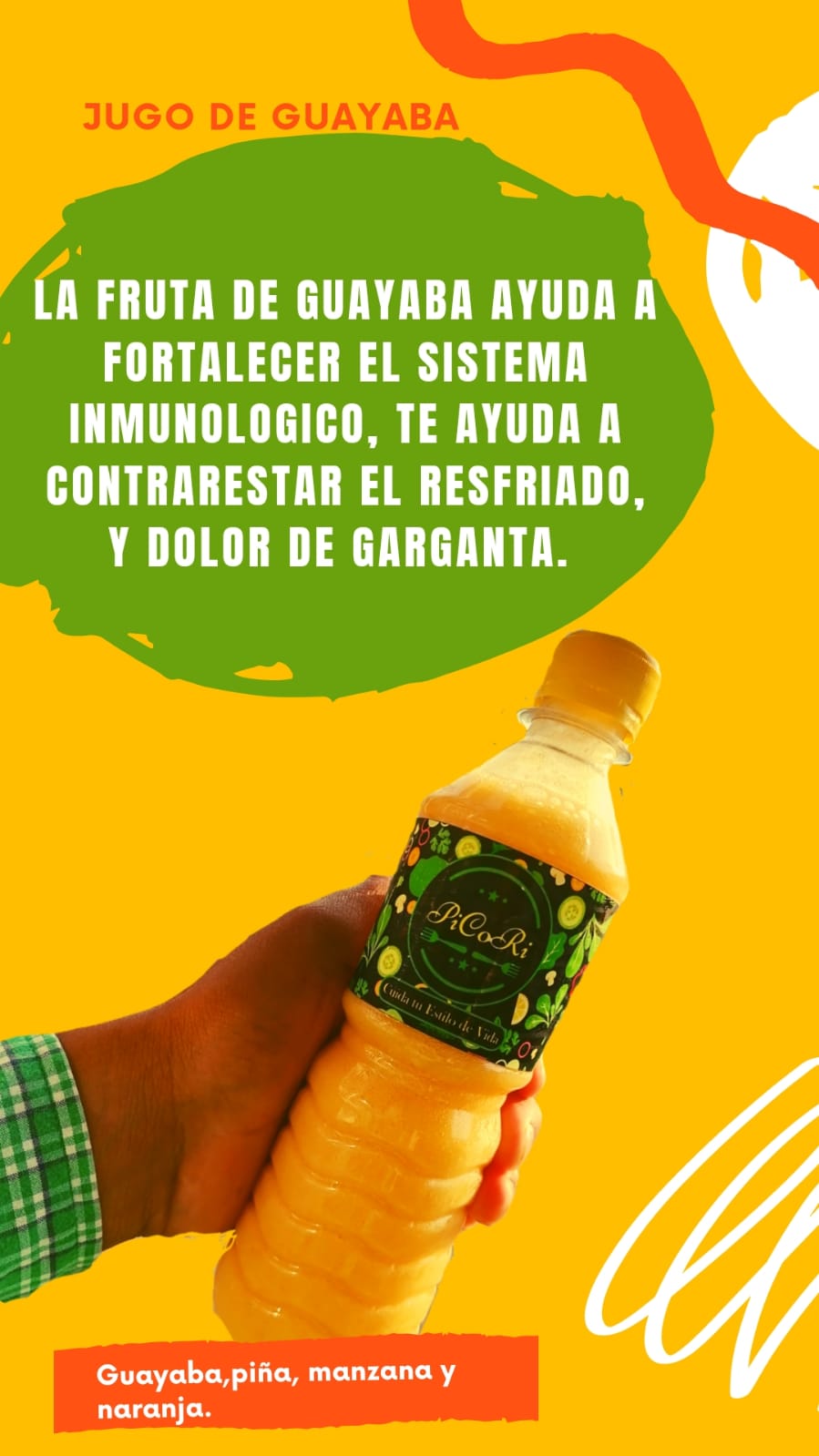 Fortalece el sistema inmunológico, contrarresta el resfriado y dolor de garanta, guayaba, piña y naranja, 500 ml.