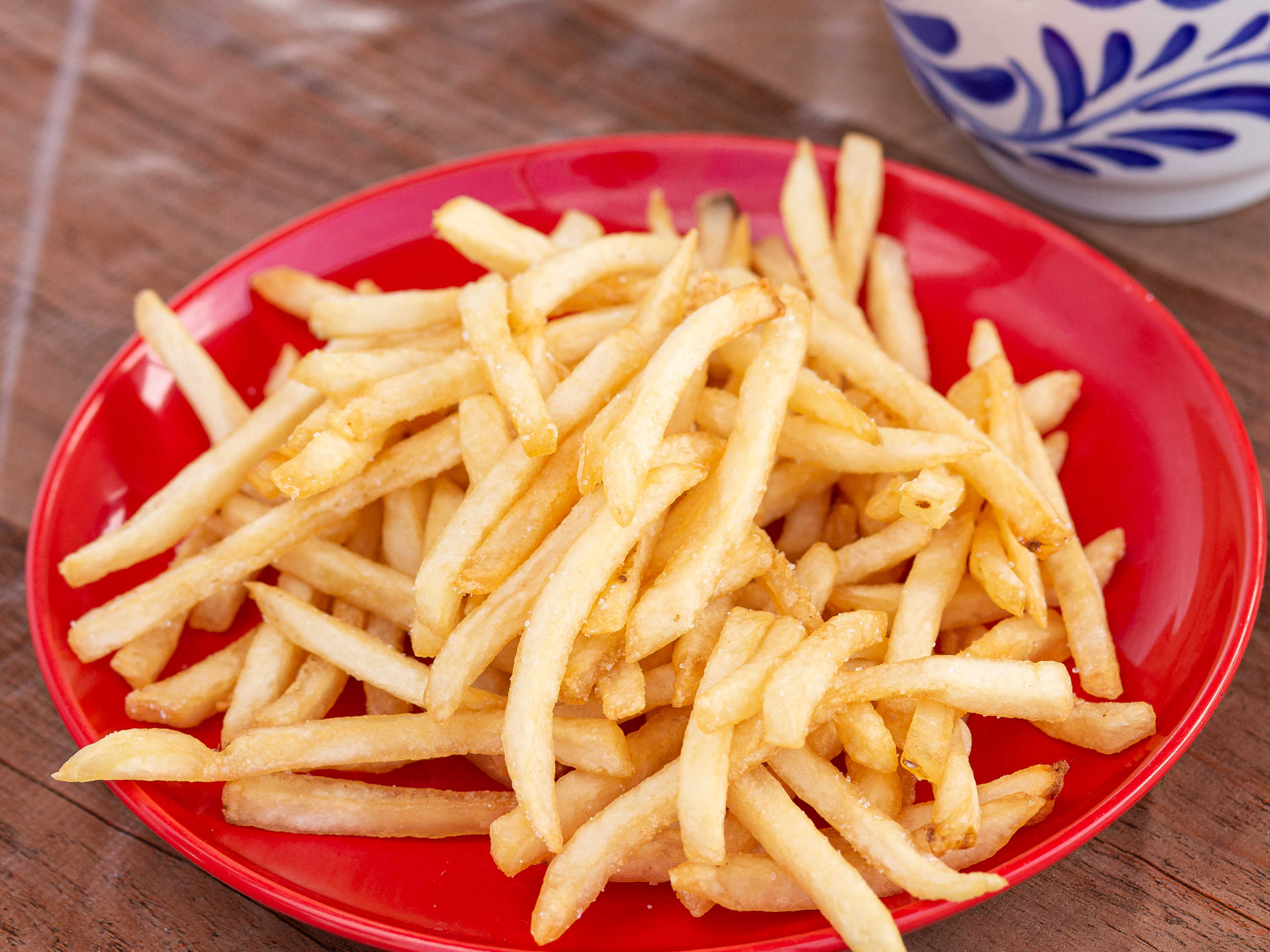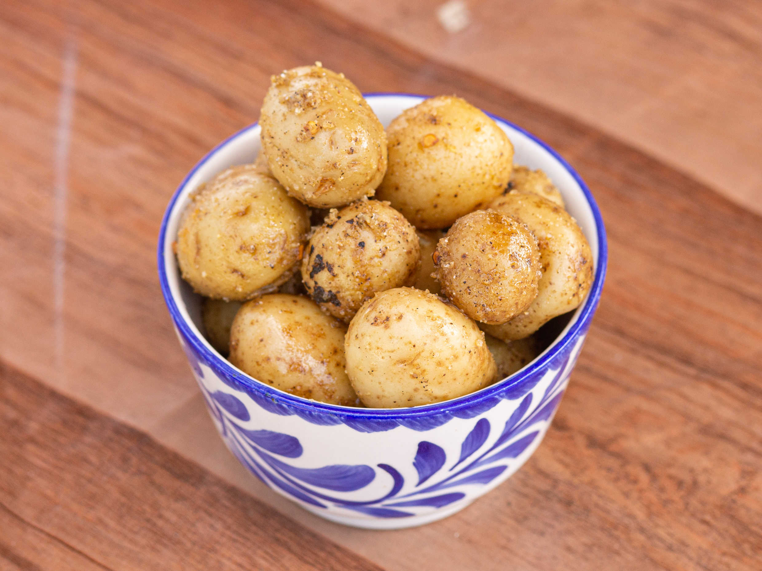 Papas cambray fritas con un toque de ajo y chile de árbol.