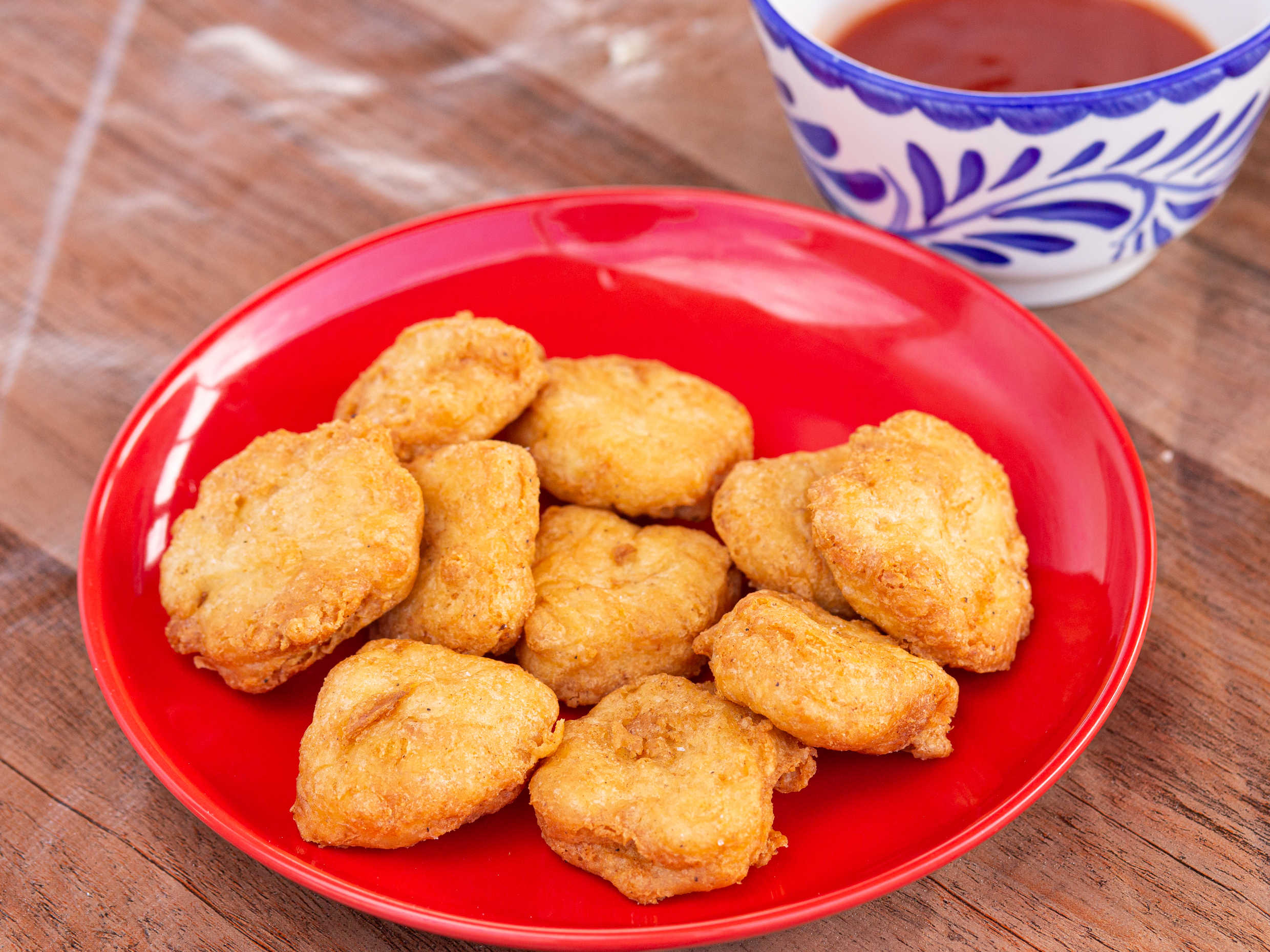 10 Piezas de nuggets de pechuga de pollo. Cátsup (envasada a parte).