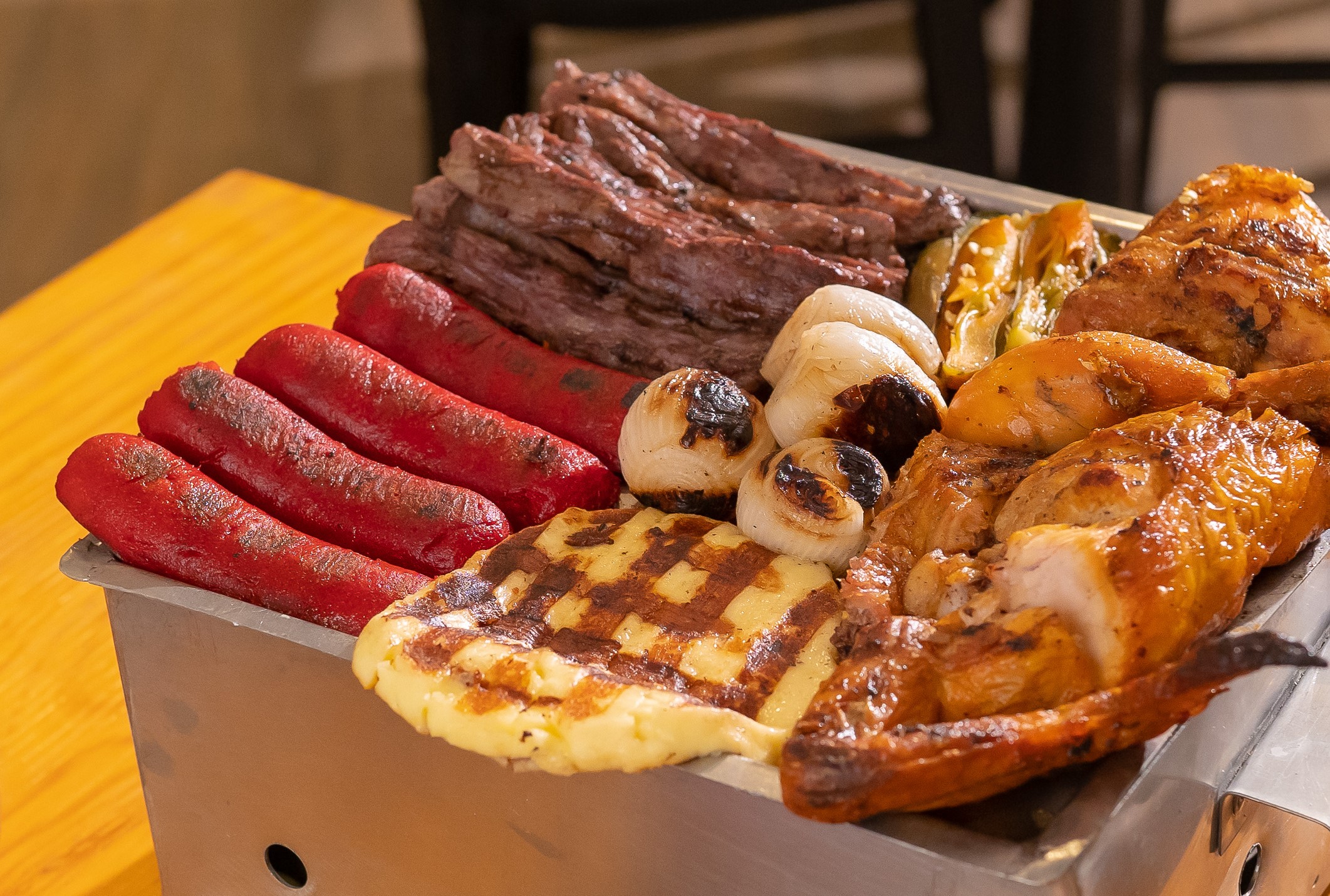 La combinación perfecta entre pollo asado al carbón y carnes. disfrutaras de 1/2 pollo asado, 250 g de sirloin, 250 g de pastor, queso asado, y de entrada 2 orden frijoles charros.