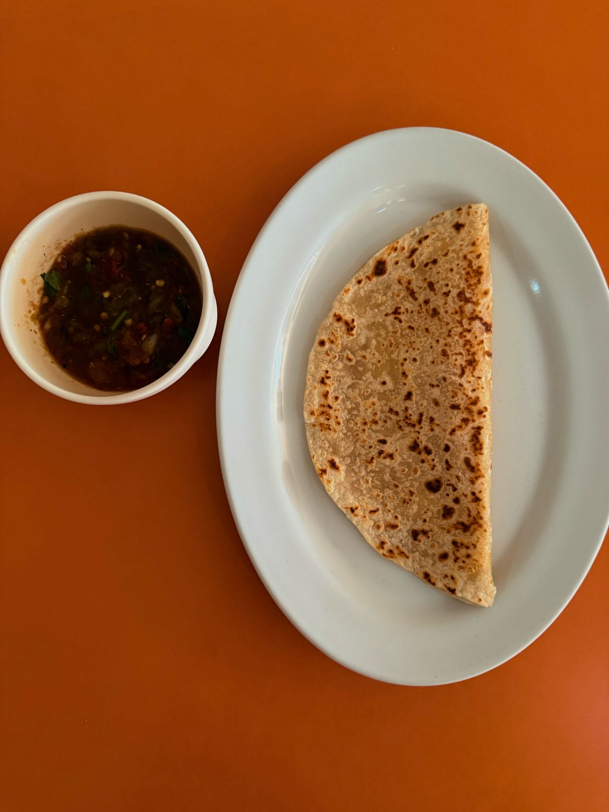 Queso fundido con 3 tortillas de maíz o harina chicas.